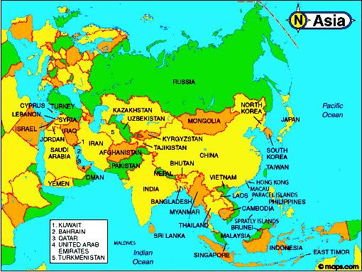 Includes surrounding Pacific and Indian Oceans. Use Edit >> Find, or scroll down,  to locate a country of your choice. Previous names for the country are shown in brackets. Alternate spelling for the country name are given if different than the English name. Where a different alphabet is used, a phometic transliteration is given, unless the name sounds the same as in English. "Intl Oval" = Oval sign or sticker used to designate vehicle origin, eg: or . Click on country location map for more detailed map.