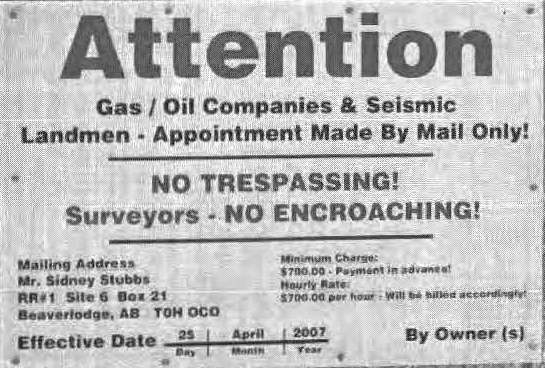 Sign at a property near Grande Prairie, Alberta, reprinted
