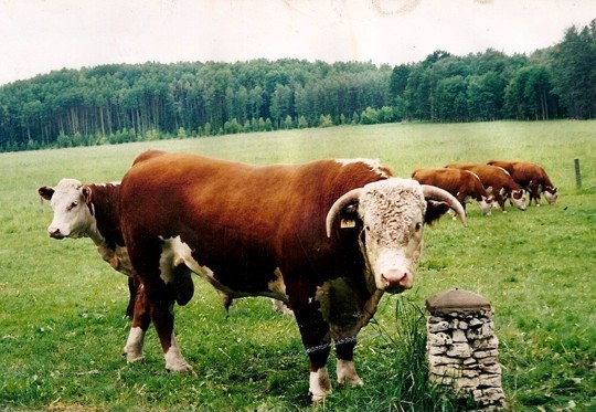 heifers and a herd bull (Horned Herefords) arrived. Using