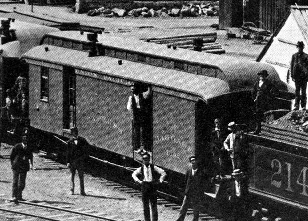 DSP&P baggage-mail-express car #42, built by DSP&P in 1879,