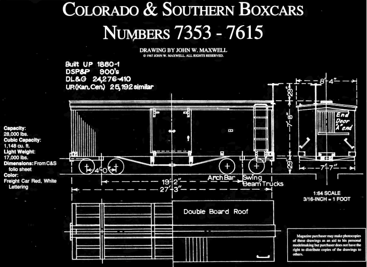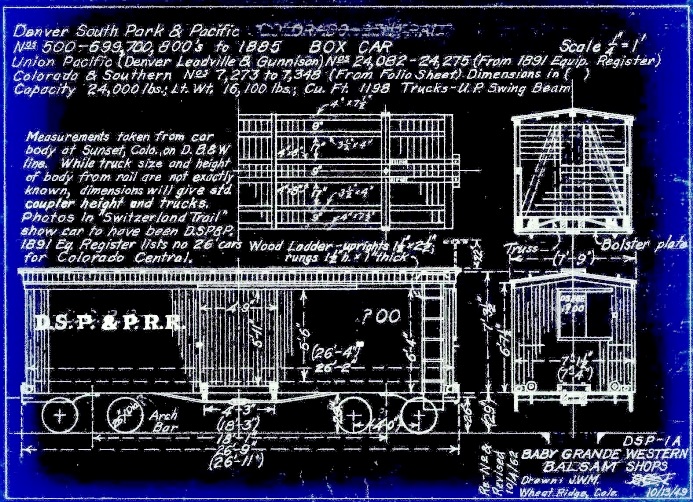 DSP&P Boxcar #816 CAD image by Bill Gould. See Bill's website for many more images, exact-scale plans, and fine art prints for sale.