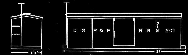 The first DSP&P boxcars #500 to 504 were short 23 footers, built by Hallack Brothers in Denver in 1874, using castings and trucks from the east. They were gone by 1885.