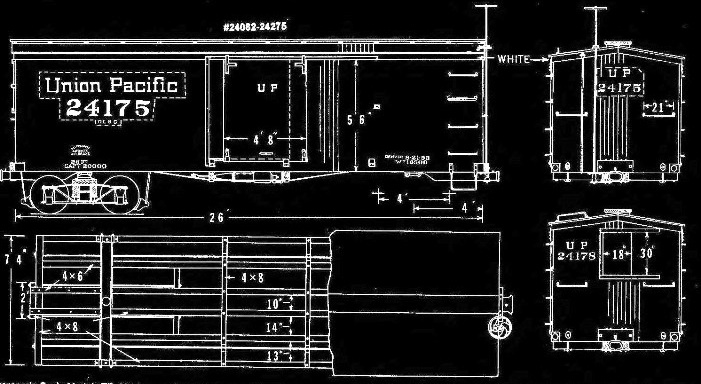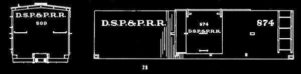 Union Pacific Omaha shops produced 150 27-foot boxcars in 1882 and 1883 in 3 batches of 60, 50, and 40 cars. These were DSP&P #740 to 889. They became 24276 to 24410 after 1885.