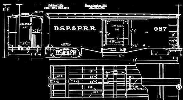 DSP&P #920 to 1099 were 30-foot cars from UP (50 cars in 1883)and Peninsular (130 cars in '83 and '84). The 30-footers were renumbered into the  24411 to 24570 series in 1885.