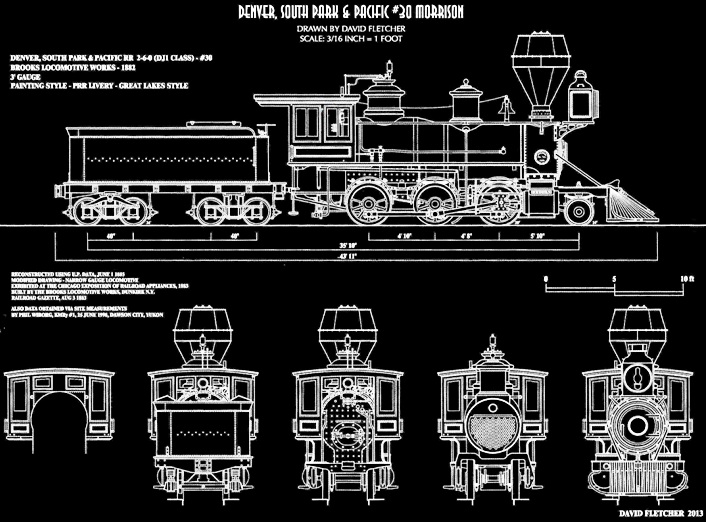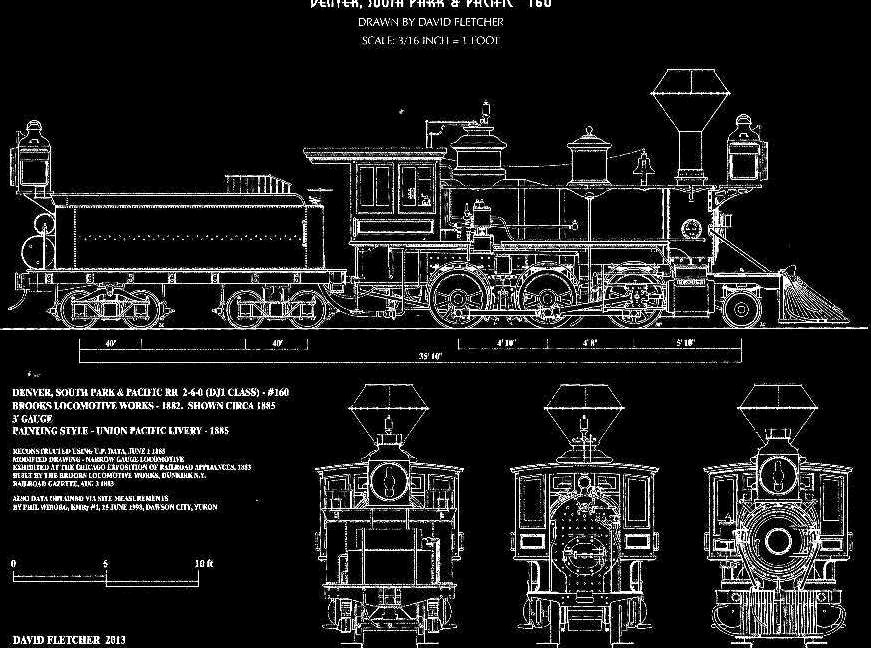 David Fletcher's CAD drawing of DSP&P #35 "Dillion", a Brooks 2-6-0