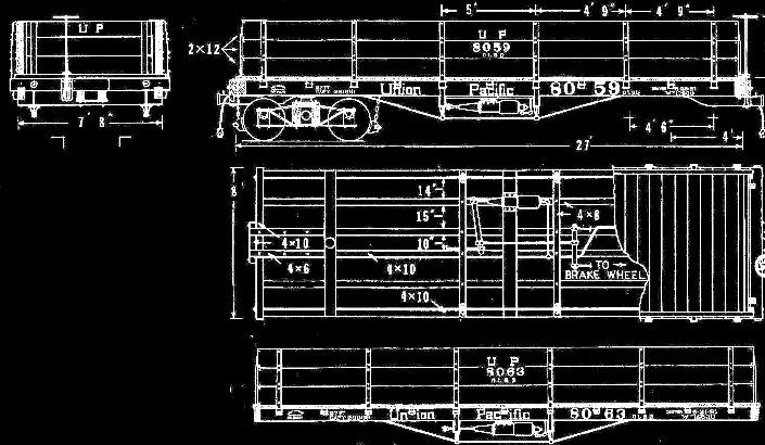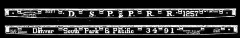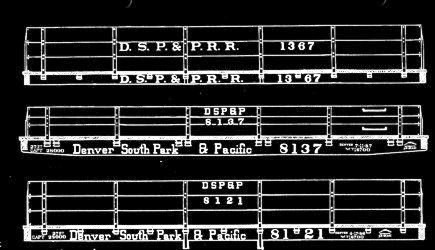 1884 was a busy year with 3 batches of 27-foot cars from Peninsular and Union Pacific, carrying numbers 1200 to 1443. In 1885, the first batch of 100 became #8250 to 8349. The UP batch became  #8070 to 8113. The final group were known as the "Pocatella Transfer" cars. They had a 20 ton capacity and were capable of being converted to standard gauge while full of coal. These became DSP#P #8900 to 8999. Only the 20 ton Peninsular cars made it to the C&S in the 4800 to 4999 series. Some of the 1200 series cars ran as flat cars, at least in their early lifr.