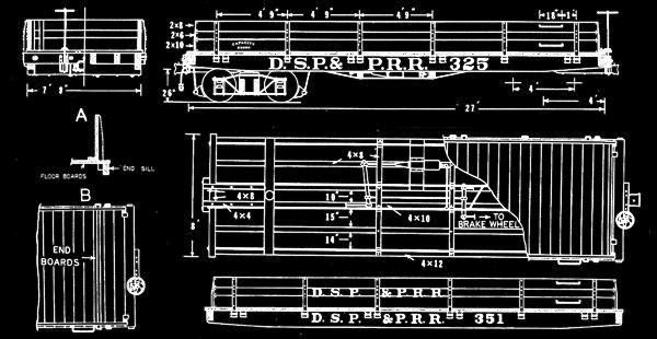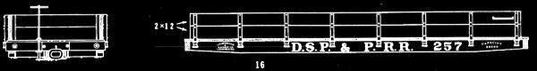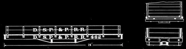 The first order for rolling stock on the DSP&P went out in 1874 for 30 flat cars, 5 box cars, 5 coal cars, a coach, a combine, and 6 excursion cars. This initial batch of cars plus 2 small locomotives were sufficient for construction and revenue service for the next four years. Further construction brought the flat car count up to around 100, and these were also probably used as coal cars or ballast cars when needed. Subsequent orders over the next 10 years brought the total fleet of freight cars up to about 1300.