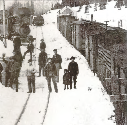 DSP&P work train in 1881 with dark coloured waycar at the rear.