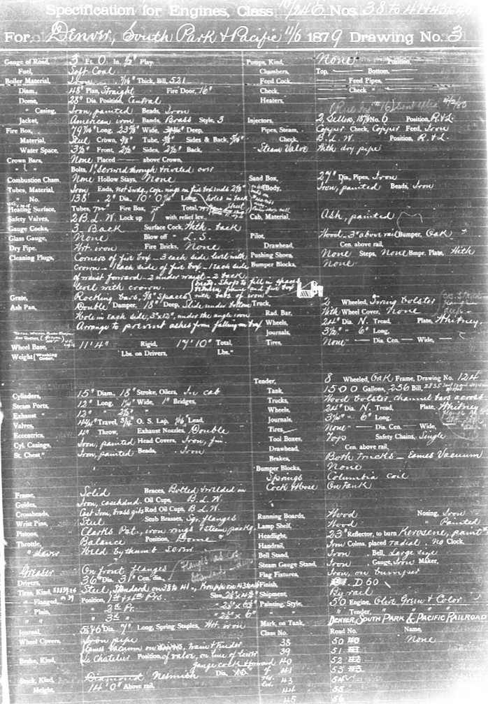 DSP&P LOCOMOTIVE SPECIFICATIONS -- 1885