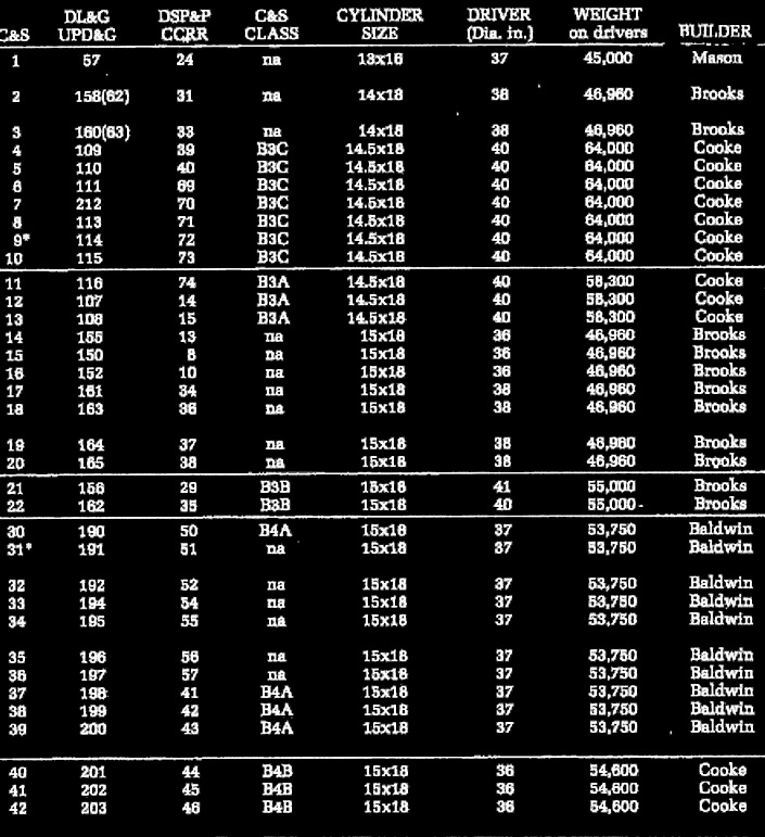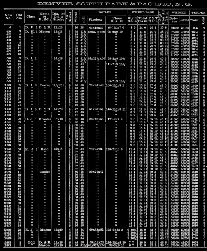 DSP&P locomotives that survived past 1899. Bear in mind that